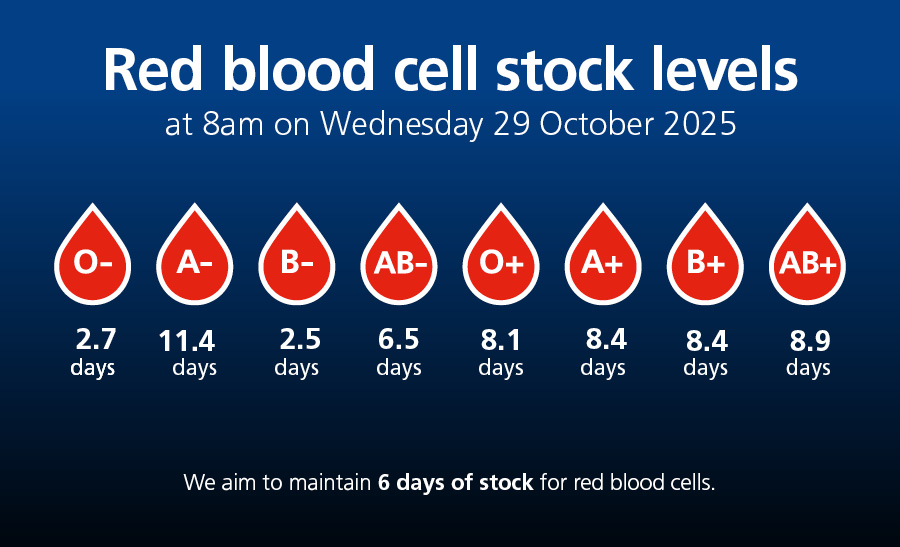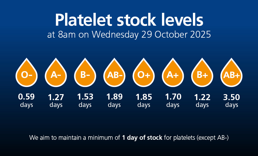 We aim to maintain a minimum of 1 days' stock for platelets (except AB-).