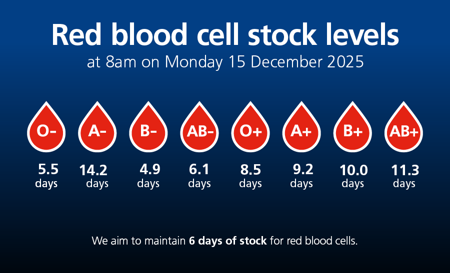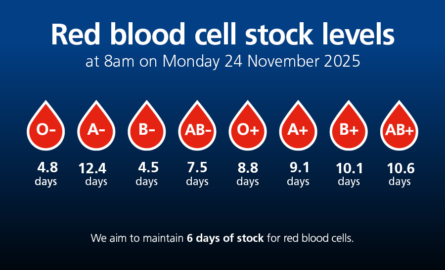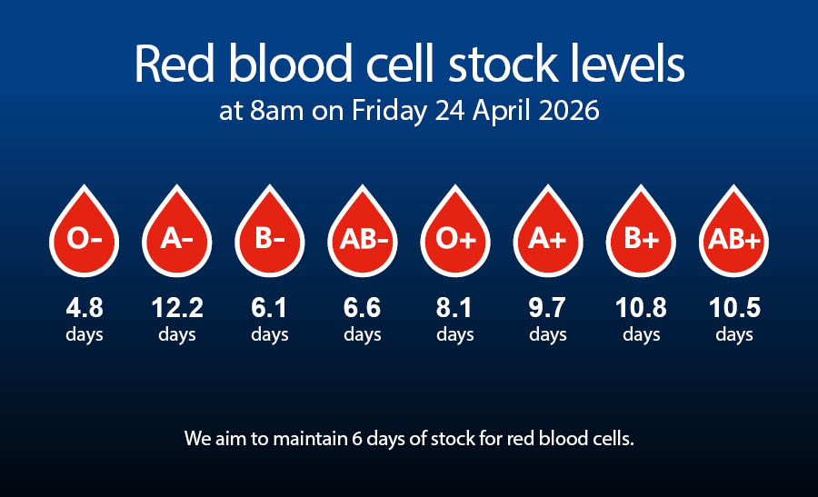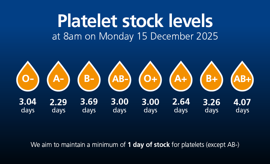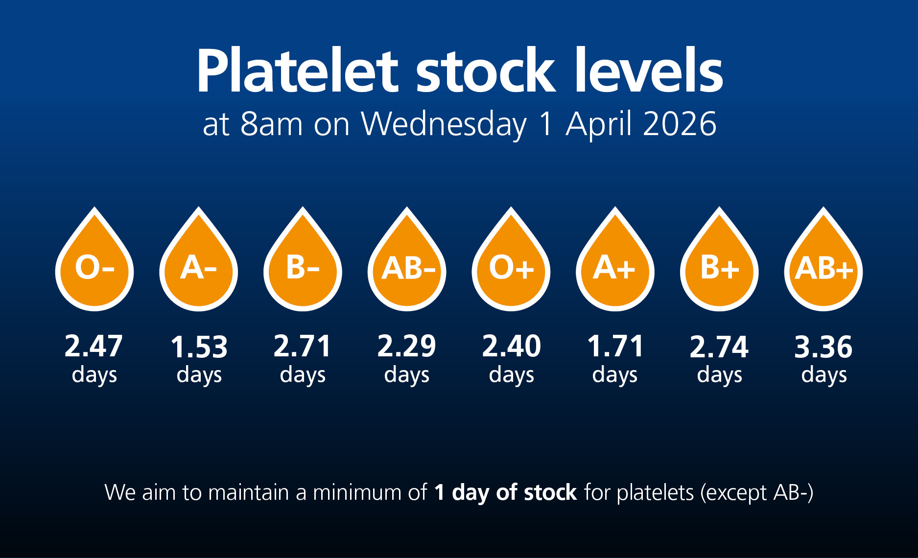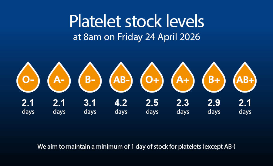 We aim to maintain a minimum of 1 days' stock for platelets (except AB-).
