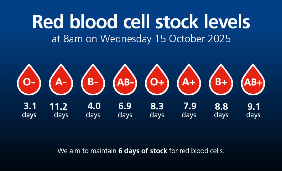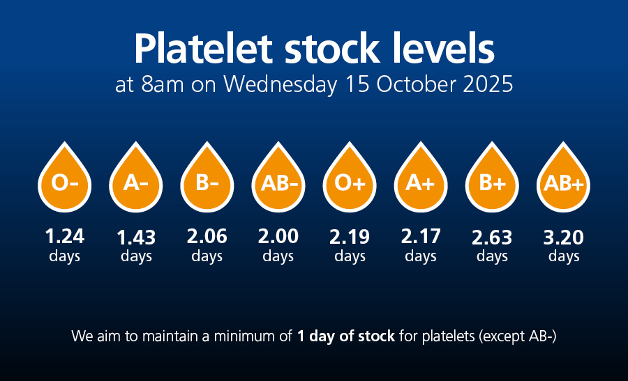 We aim to maintain a minimum of 1 days' stock for platelets (except AB-).